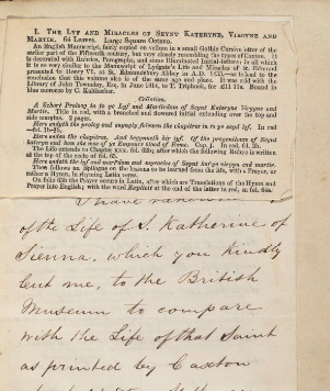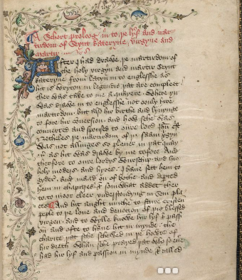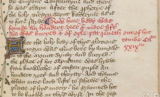 This is a 15th century manuscript of the life of Saint Katherine.